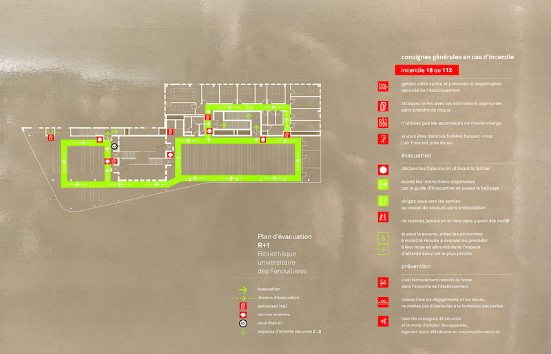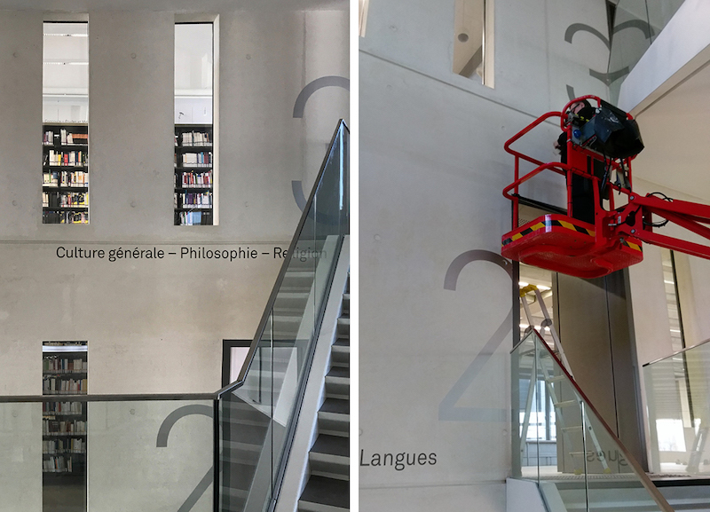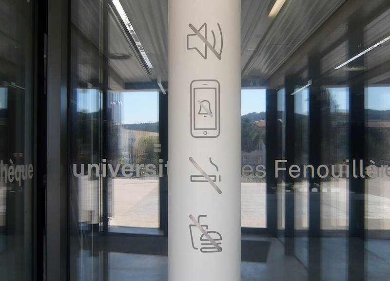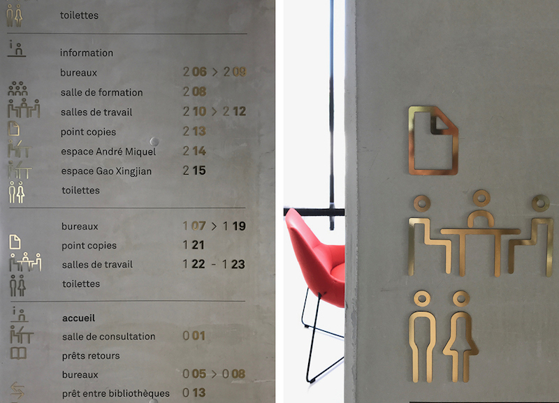 艾克斯-马赛大学图书馆位于法国普罗旺斯地区艾克斯,拥有约20万册书籍、培训室和一系列完善的配套设施。Béatrice Fichet受邀为其进行导视系统设计 。