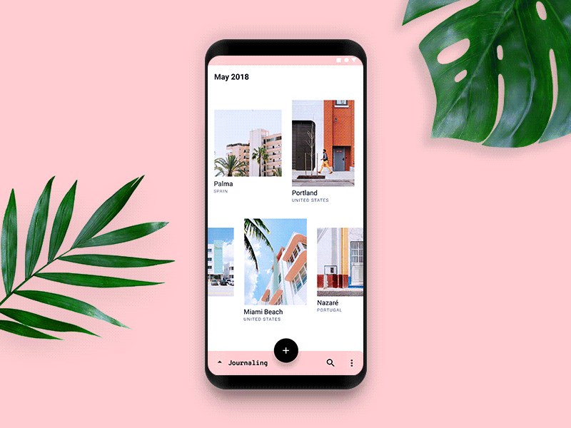 某 APP 底部应用栏:重叠 FAB 和排列图像列表的交互流程