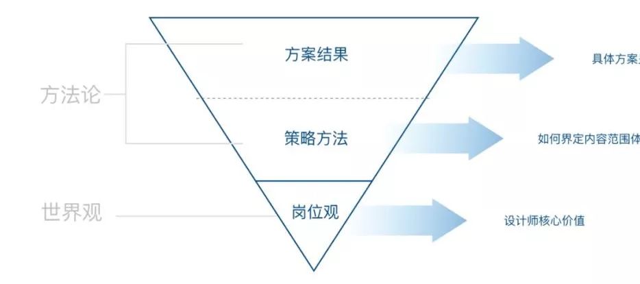 为什么要讲底层岗位观?听过很多的设计师分享或者汇报,内容看起来十分丰富,但稍微斟酌,不难看出很多内容都是产品经理的职责范围,那么设计师的岗位职责边界到底在哪,设计价值是什么?却没有清晰的传递出来。众所周知,一个人的世界观决定着你的方法论,而你的方法论决定着你的行为结果。