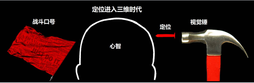 而里斯也为定位战略给出了一系列配套。除品类分化、开创新品类、占领心智外,还给出了策略上的四种营销战(防御战、进攻战、侧翼战、游击战)。在战术上提出公关加广告双核驱动。最后还发展出了语言钉、视觉锤、战斗口号等全套工具包。