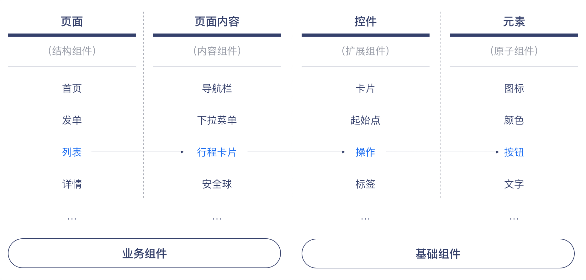 在我们实际的设计过程中,组件的分类与产品页面的层级结构具有清晰的对应关系: