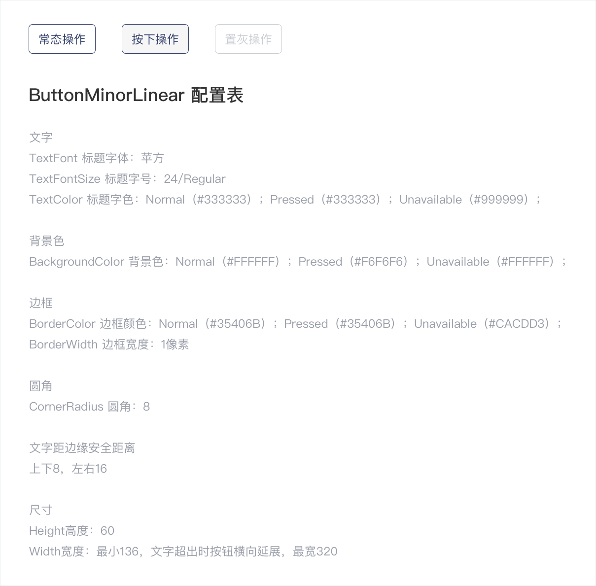 我们以上文中提到的ButtonMinorLinear按钮为例,看下具体的配置表该如何描述: