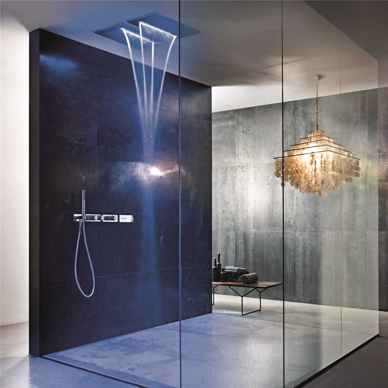 ACQUA ZONE DREAM顶喷是知名设计师Franco Sargiani创意之作,可以安装在淋浴房的天花板,喷头有雨淋、瀑布和喷雾三种不同模式,易美居选材认为配上LED灯(有白色、黄色、红色、绿色、蓝色多种不同颜色)在冲洗过程中会营造出一种如梦如幻的洗浴氛围。