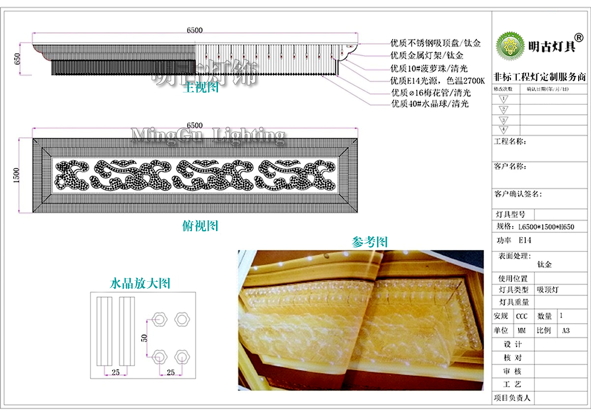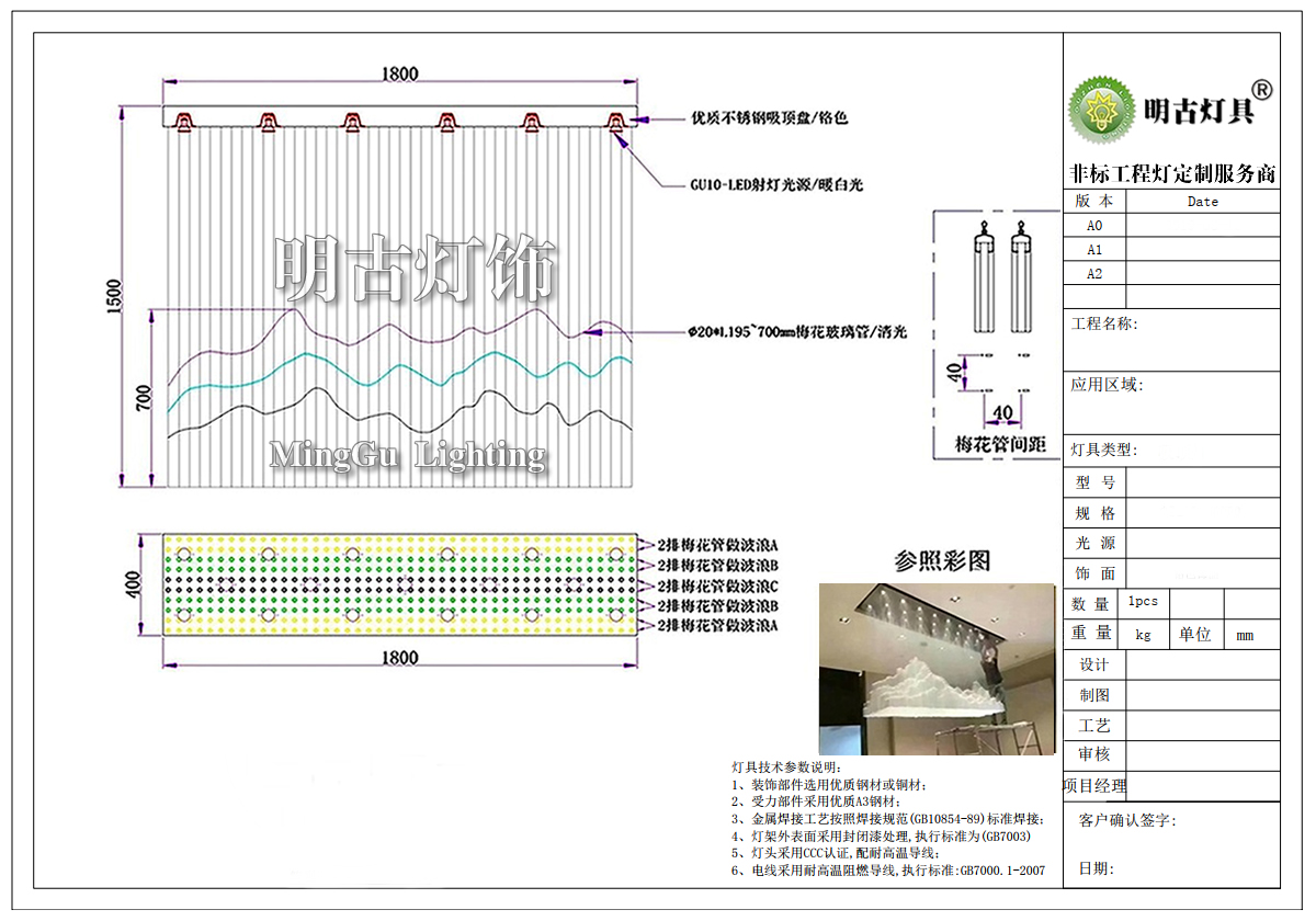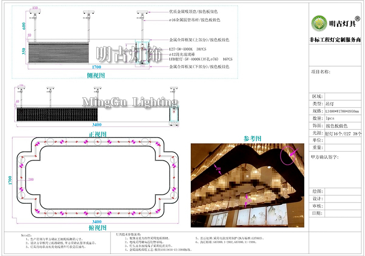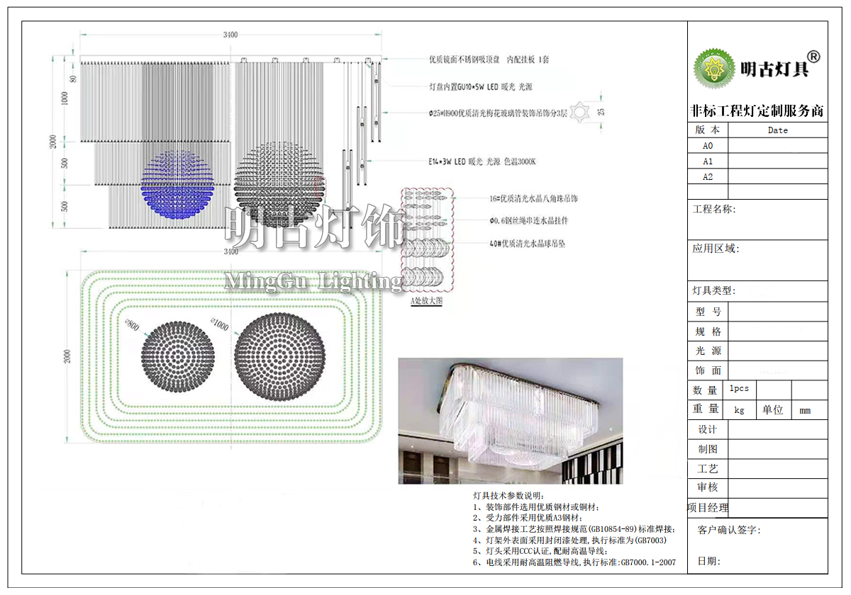 中山市横栏镇明古灯饰厂设计部2019年09月份共完成灯具设计结构图方案15张,按灯具类型分:非标工程灯、艺术工程灯、水晶灯等;按工程项目分类:售楼部、酒店、餐厅、会所等项目;按客户地域分类:辽宁、贵州、安徽、四川等地。