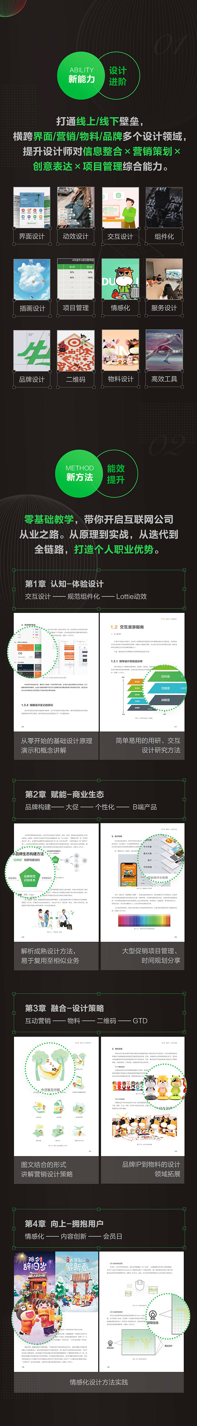 全书从理论知识、项目经验、营销方法、会员服务4个方面浓缩设计师在日常工作中的突破和创新。内容讲解深入浅出,将设计方法和商业实践高度结合,学用合一,技艺兼修。专业上横跨界面/交互/营销/物料/多媒体/项目管理等多个领域,全面覆盖线上、线下场景,是行业内不可多得的全能力宝典。