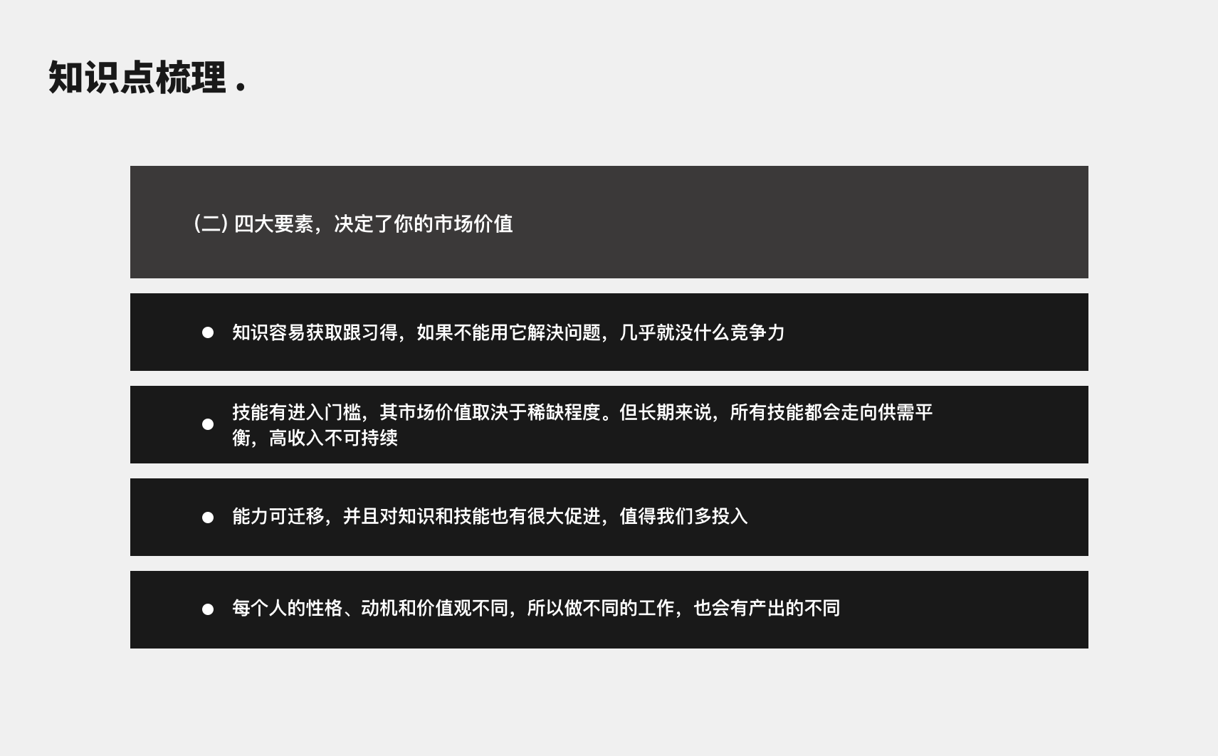 所以你会发现,单纯的知识储备,如果不能结合思维能力去解決一些具体问题,是很难提升你的市场价值的。