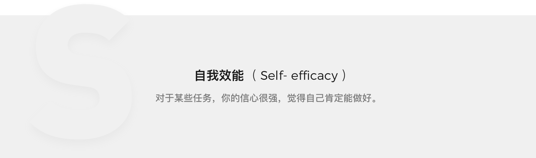 字母S对应的表现是Self- efficacy,自我效能。它的意思是对于某些任务,你的信心很强,觉得自己肯定能做好。