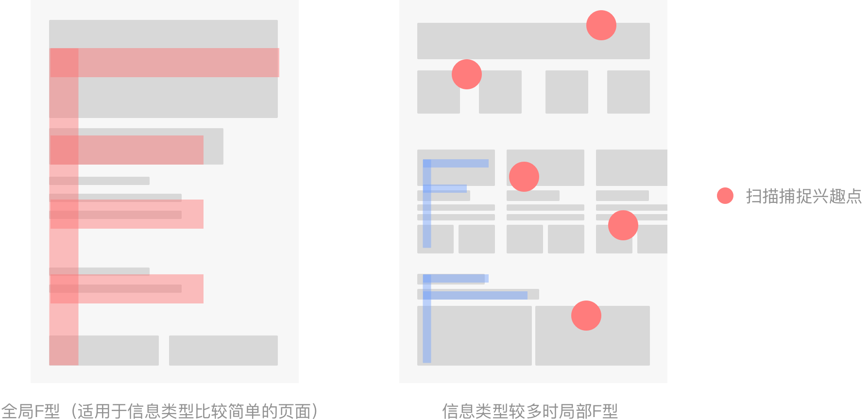 任务激励可以是实质性的,例如参团打折,新人优惠;也可以是情感上的,例如徽章成长系统。用户能够在过程中感受到愉悦感,成就感,在情绪高点进行引导,完成转化。要用户明白是怎么一回事,设计层面上的高效性与仪式感就显得重要了。信息布局上,遵循用户F型浏览顺序,这里指的是某一个既定信息模块——当页面信息较多时,用户倾向于“一目十行”地扫描,捕捉关键兴趣点后才会仔细阅读。