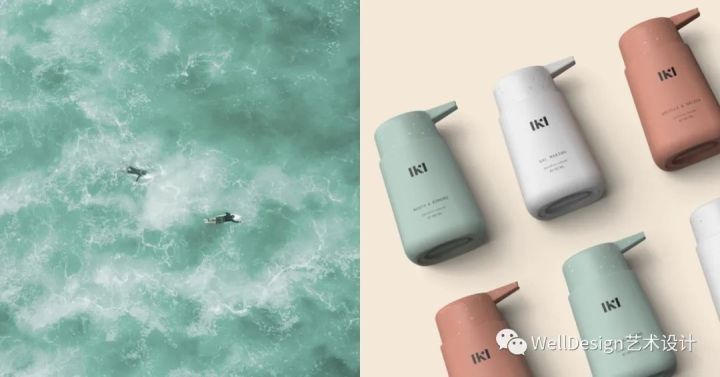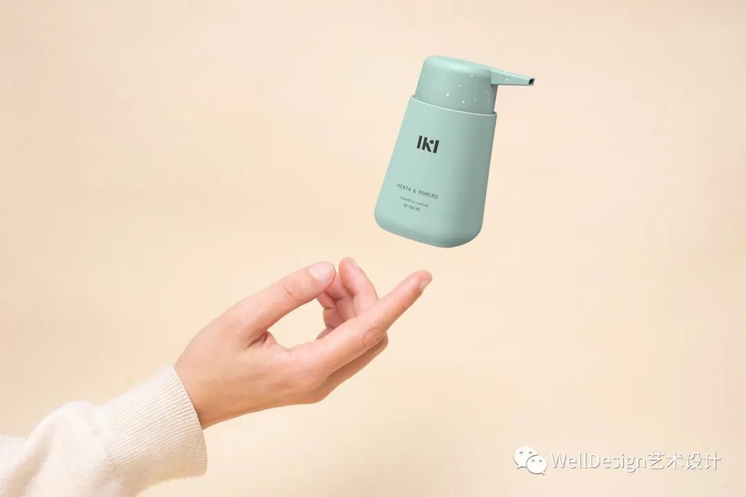 IKI的背后是轻松,清新和优雅的概念。我们想象在Menorca的海滩日落,阳光轻柔地照在沙滩上,海浪拍打在岩石上。为了反映这些想法,设计师决定使用具有烘烤粘土质地的再生塑料容器。颜色范围代表大海,容器的形状受海鸥启发。