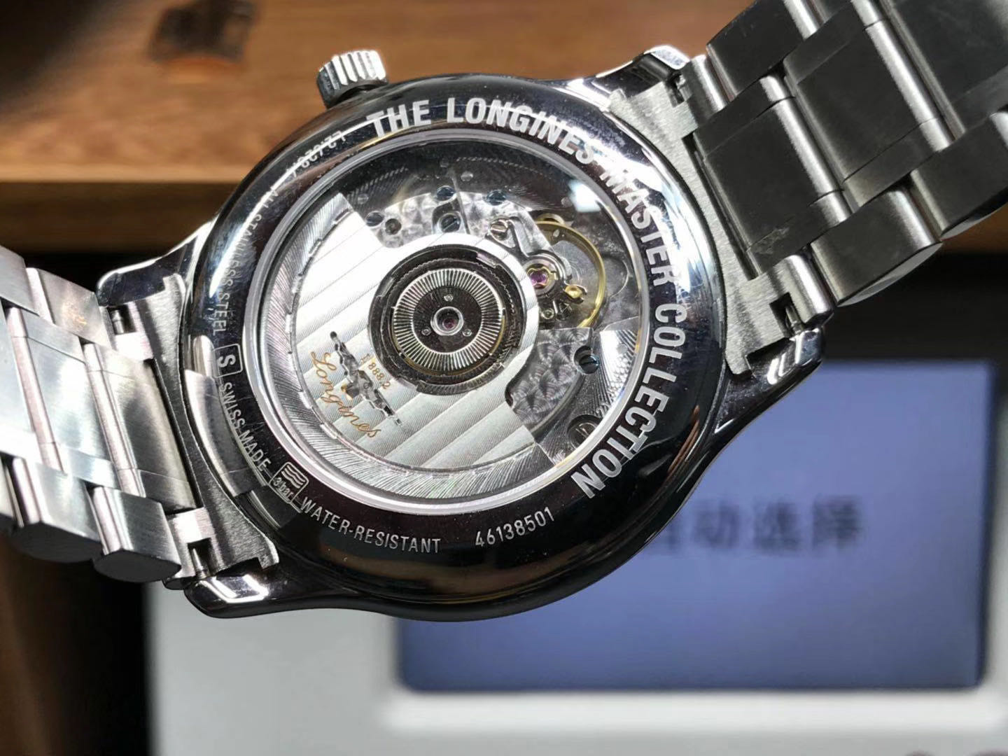 职场白领专属表盘38.5mm,表友们看清楚自己的手腕,不要买了嫌弃小,本来这个系列就不是给大壮们佩戴的,背透打磨和避震器都很到位,刻字清晰可见。