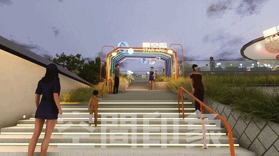 除了零售、餐饮、休闲娱乐、儿童等业态外,火星小镇还有科技文化馆和观星等为“夜”定制的特色业态,循着斜坡屋顶的阶梯而上,伴着古徽州的韵味、花草木的自然气息、外太空的炫酷交织的一路走向科技文化馆和“星空弧”,在夜空下,闲憩、赏景、观星,一派惬意自在。