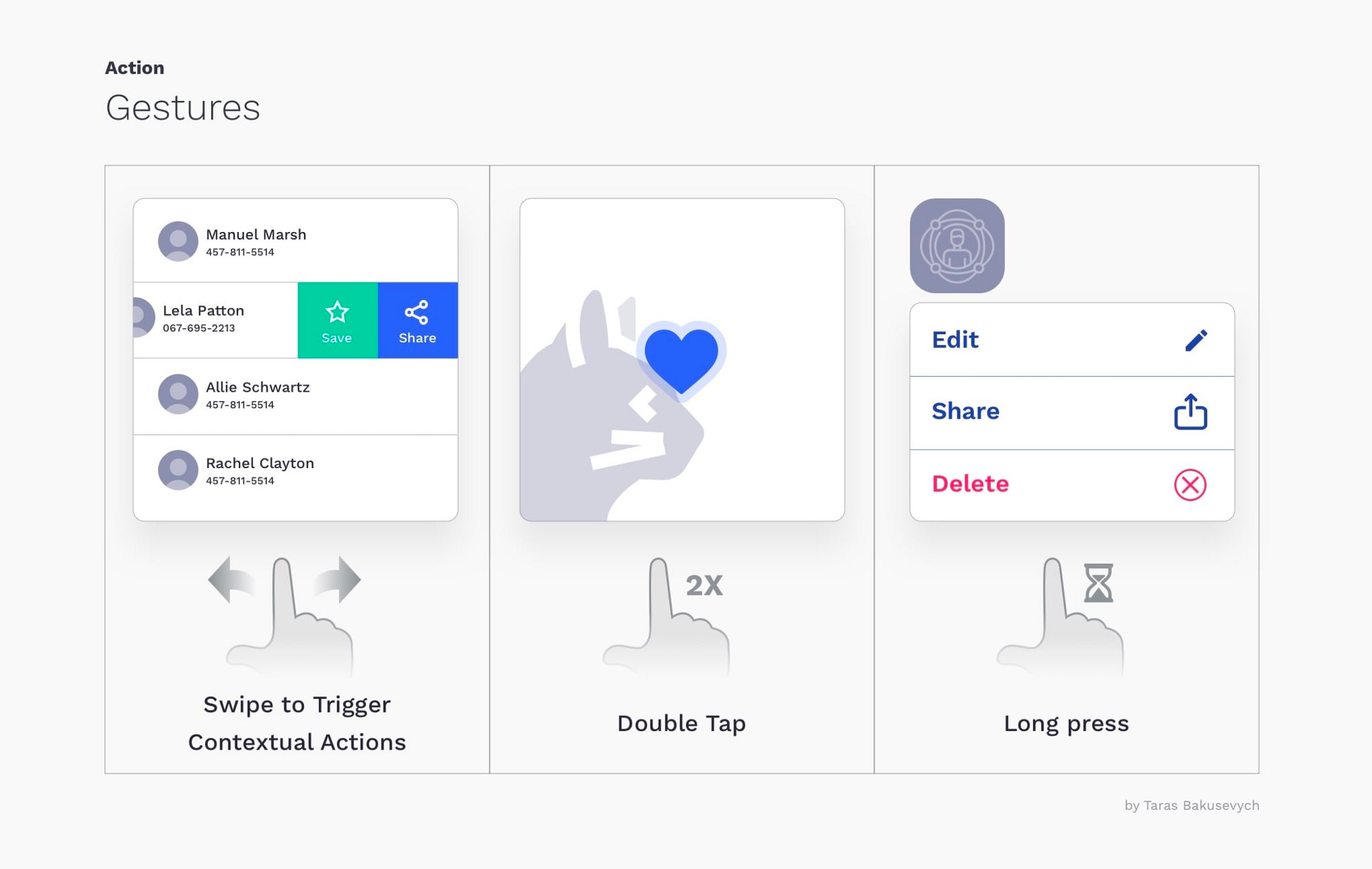 手势使用户可以通过触摸与应用程序进行交互。使用触摸作为执行任务的另一种方法可以节省时间并提供触觉控制。随着某些手势(例如滑动以触发上下文动作,双击以喜欢或长按)每天都在广泛使用,它们对于普通用户而言仍然不是很明显。我建议使用它们作为对高级用户执行操作的替代方法。