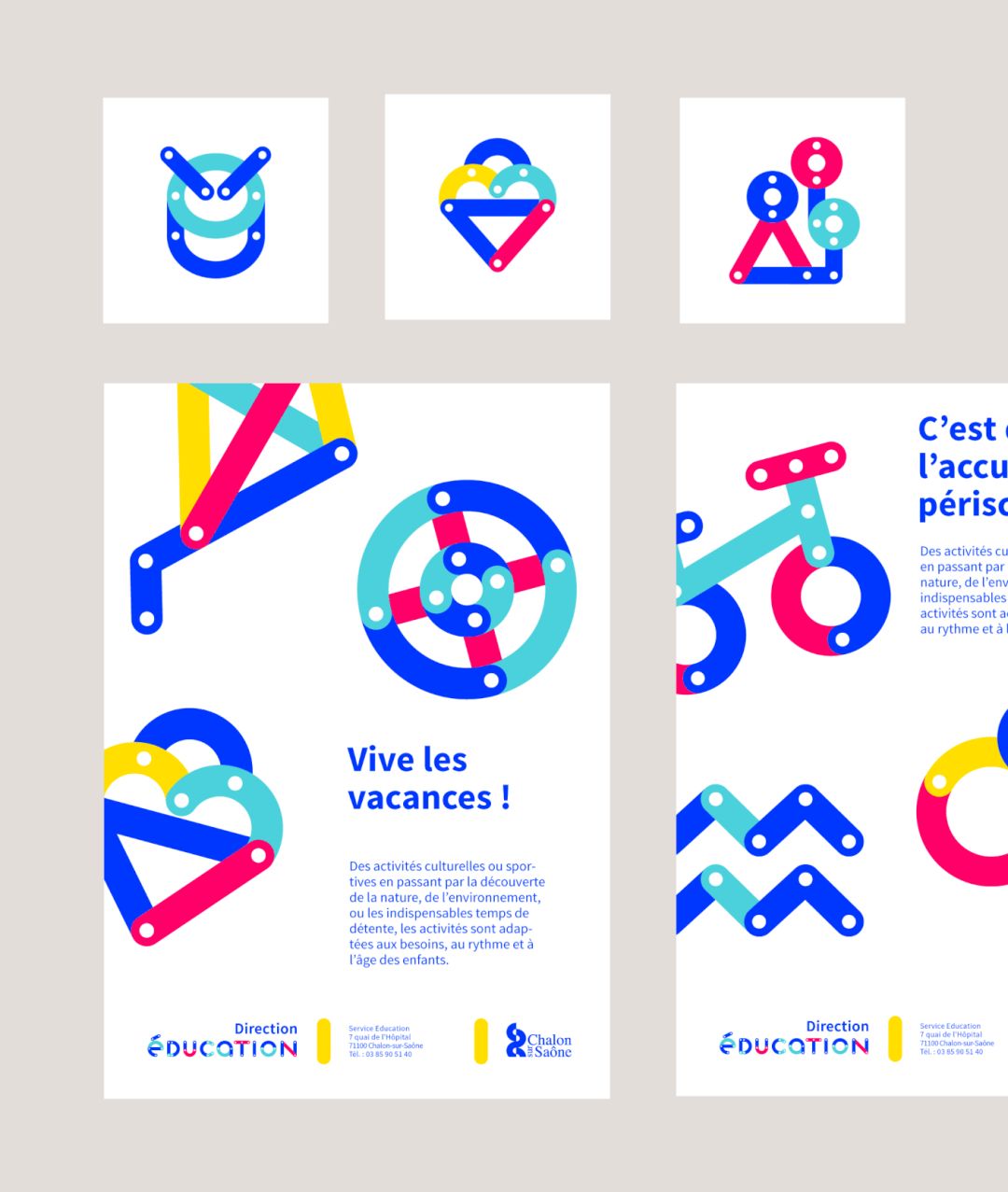 ▼(Chalon-sur-Saône城市教育局VI形象设计,通过一个对孩子友好的视觉项目,协调学校与学生之间的交流方式。)