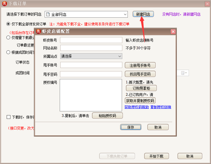 选择你要下载的订单网店;