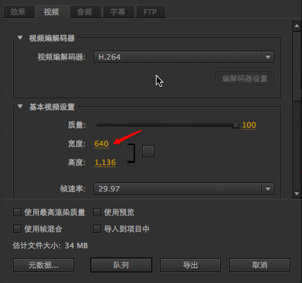 视频编辑我使用的是Adobe Premiere。iMoive、Final Cut输出视频貌似只有默认尺寸,没有自定义的640x1136视频尺寸。