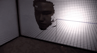 这是 Raven 在研究生时期研究项目的延伸,Raven 称之为:联系现实空间和虚拟空间的投影表面,能与观众进行不止于视觉的交互。