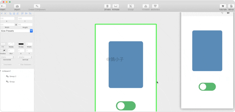 Principle在5.6更新版本中加入了组件发送消息指令的功能,常用在组件开关、状态切换后,发送指令控制其他组件发生动画。