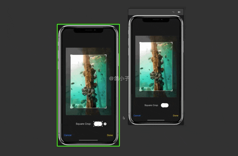 但上面提到,官方动画当点击开关后,开关切换动画完全结束后,才触发上方画幅变化动画。