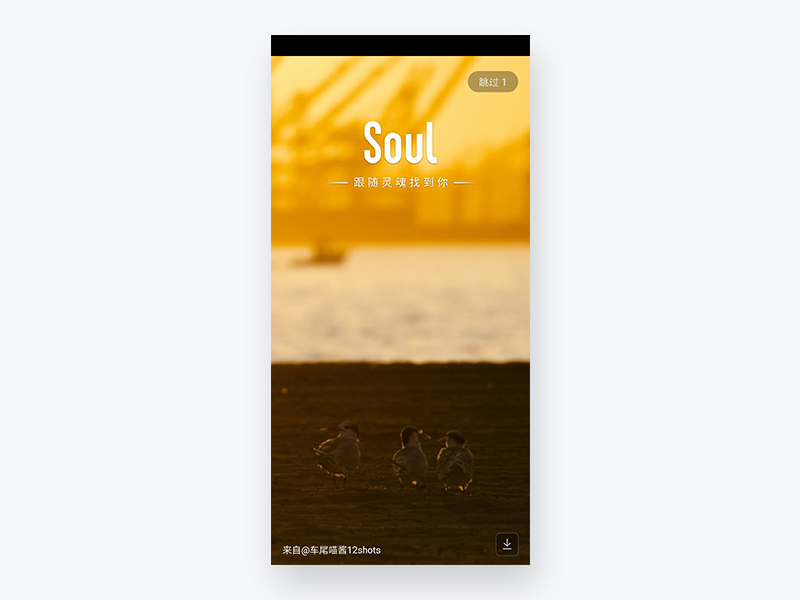 Soul在登陆时,闪屏页会展示用户上传的优质壁纸,在右下角有下载按钮,可供其他用户直接下载