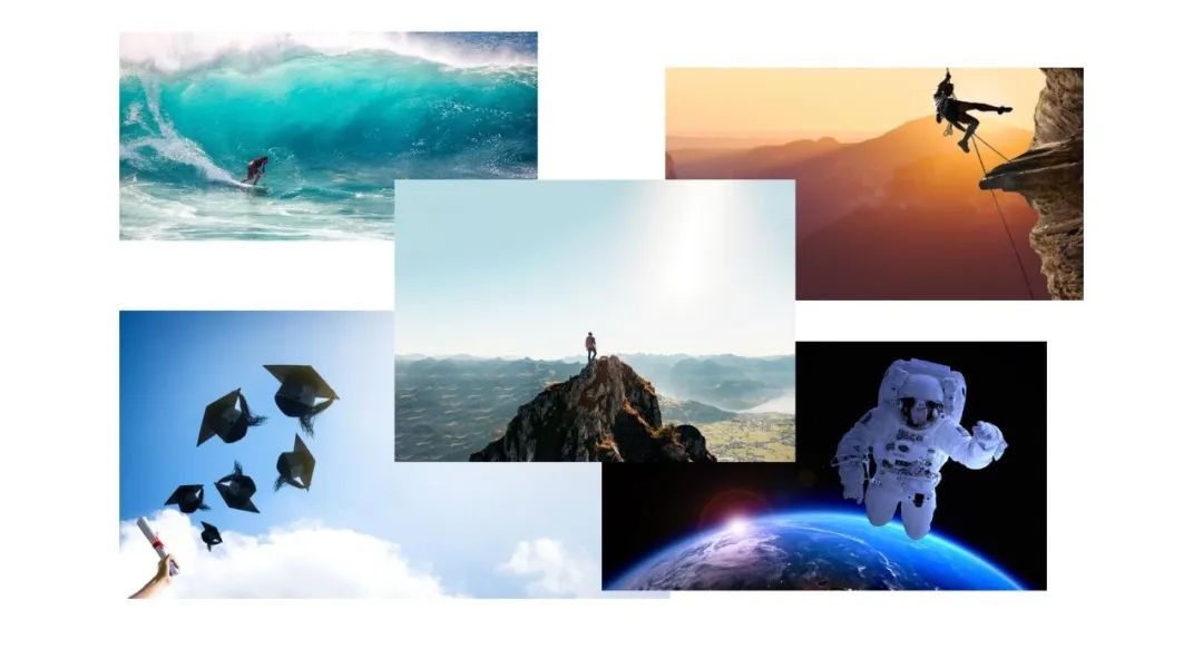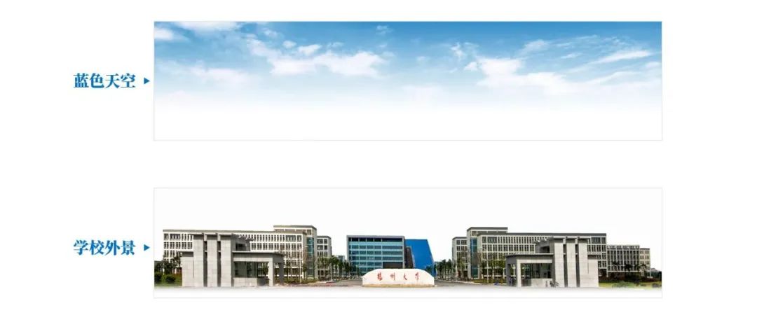 对于学校、企业等,使用带有名称的外景图片是非常贴合主题的,还可以找一个蓝天的天空素材作为烘托氛围的装饰。