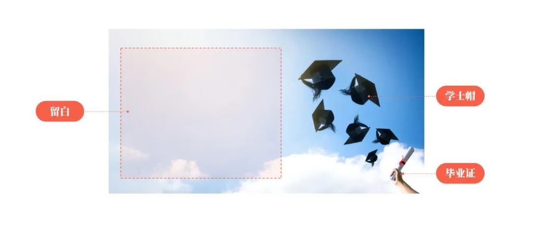在左侧版式中,文字采用“左对齐”可以和右侧主体更加平衡,可以通过大小对比、颜色对比、粗细对比来突出主题文字。进一步凸显应届生,可以增加一个学士帽的装饰。