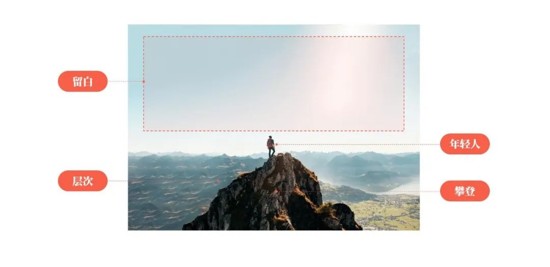图片主体为横向的,而且比较狭长,所以比较适合上下型版式,图片放上方,文字放下方,并采用左对齐,装饰的图形放置在右侧留白处,增加背景的质感和亲密性。