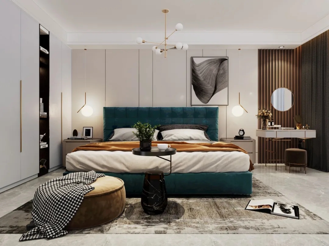 卧室空间减少装饰,只留下必要陈设。将现代主义的简洁与细致充分表达,打造令人眼前一亮的卧室。