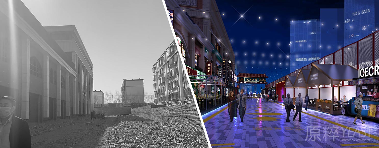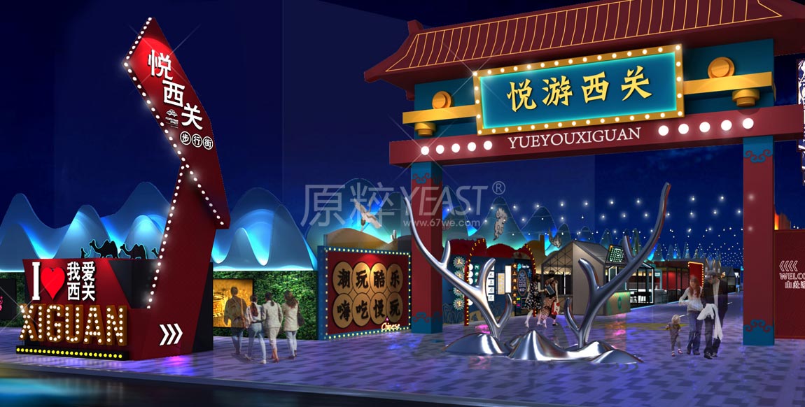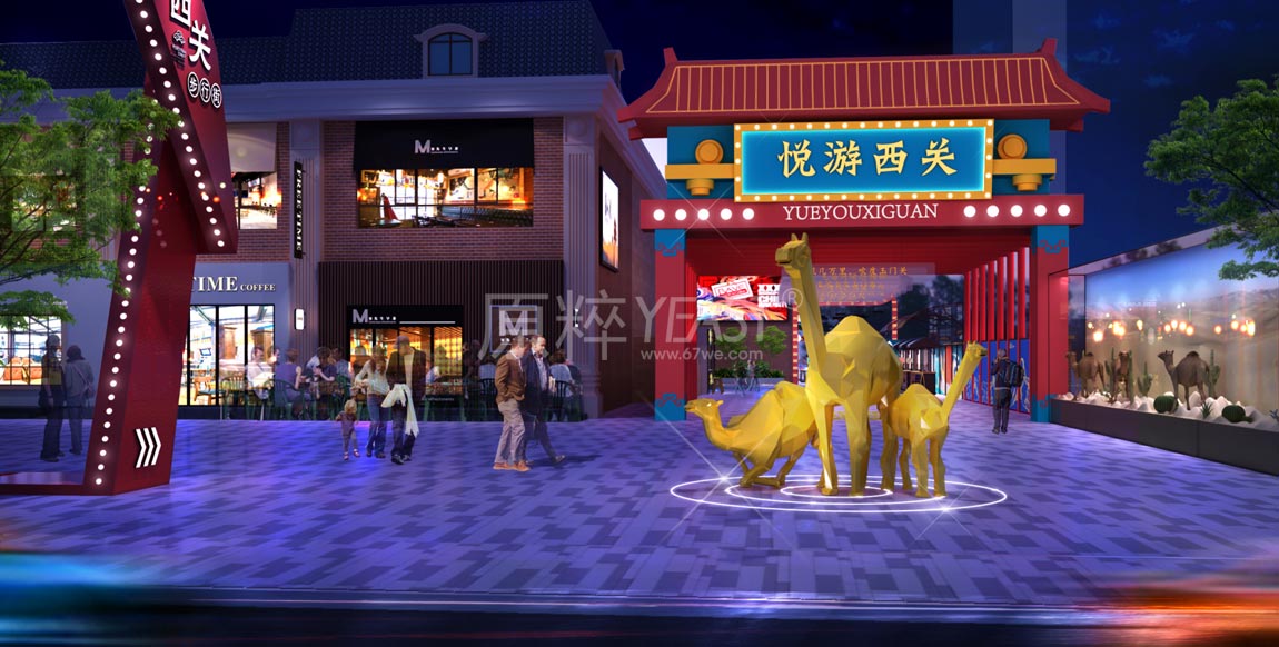 在嘉峪关,原粹通过悦西关的打造,结合本地传统文化与夜经济,运用现代的手法打造了一条“文旅融合夜间经济”目标性的商业街。