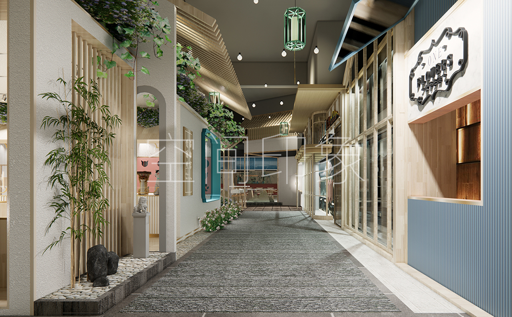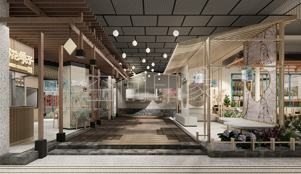 一步一步趋近,仿佛走进了江南巷陌,又好像品出了江南园林的意境。整个室内文创街区以江南小镇的诗情画意为基调,我们借鉴了常州当地古建筑制式与园林的魅力,进行趣味化、时尚化的处理,塑造具有江南意境与现代美感的室內空间,打造一个藏匿于商场里的既熟悉又新鲜的“江南秘境”。我们希望在这里可以领略到常州人民生活与文化的相互融合。