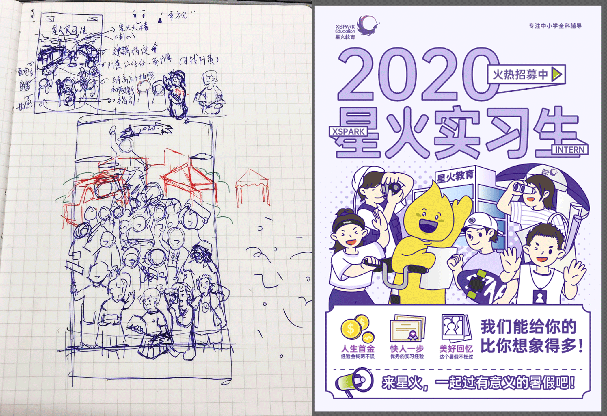 这次我们以“星火实习生”项目,浅谈一下插画元素×教育品牌的应用与创意。