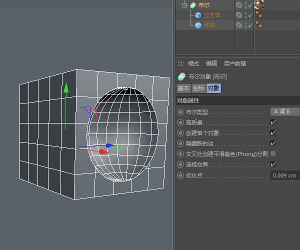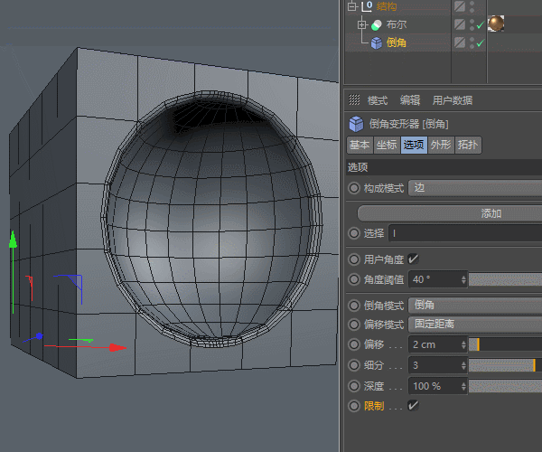 2、布尔倒角选集有使用限制,比如用球体减去正方体效果就不理想。