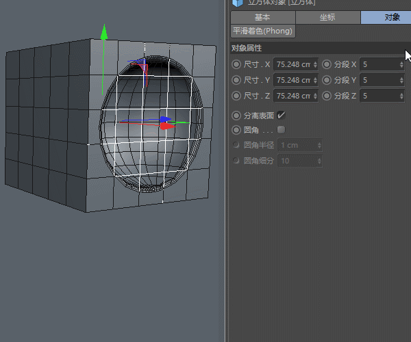 (一些参数与上面略有不同,BOX加有圆角 ,球体分段有加大)
