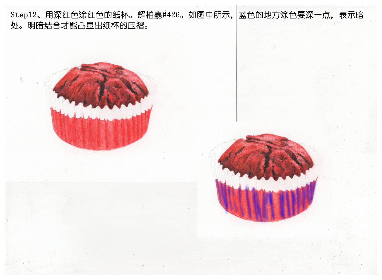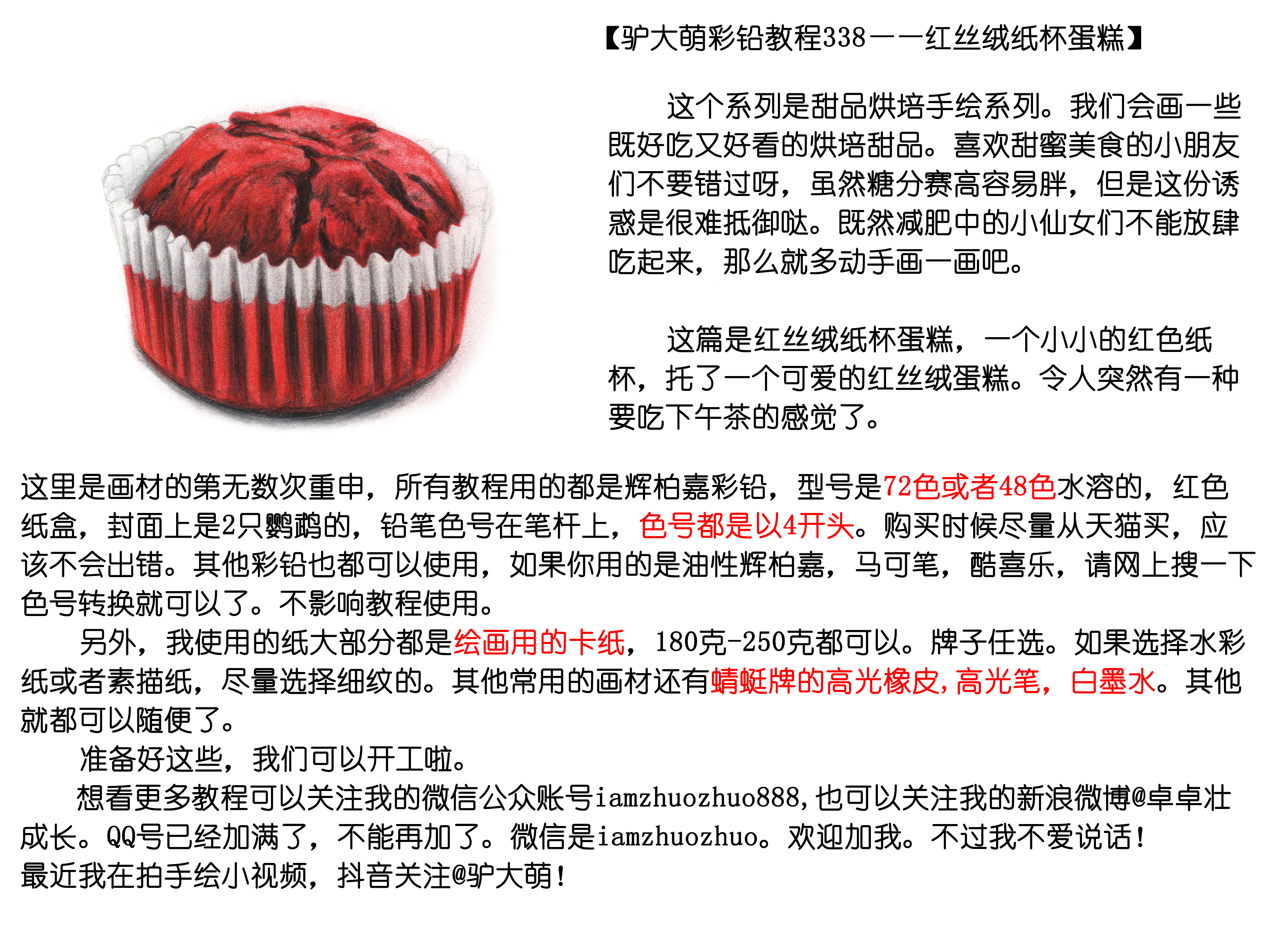 【驴大萌彩铅教程338】红丝绒纸杯蛋糕