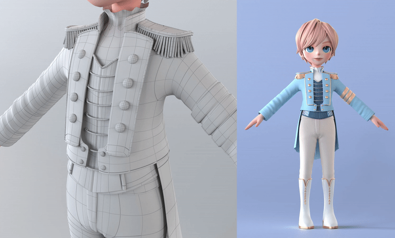 实际3D建模我们要考虑角色比例找到合适的服装比例和服装契合度。尽管实际上是很漂亮的服装,应用到角色可能也会不好看,所以在进行3D建模时,优化细节很重要。