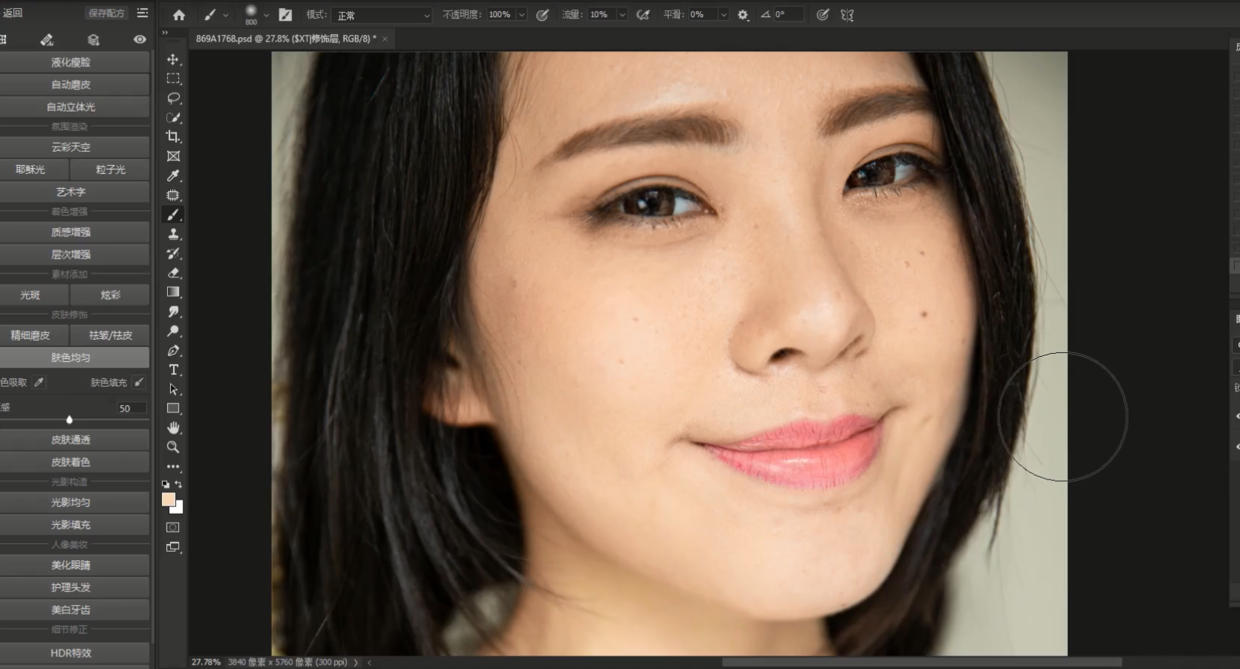 步骤一:祛瑕疵,祛脸上的痘痘,不好看的细纹,粗大毛孔,会影响美观的一些杂点,一般会保留一些好看的斑,比较细的颗粒,这个空白层就是祛瑕疵。