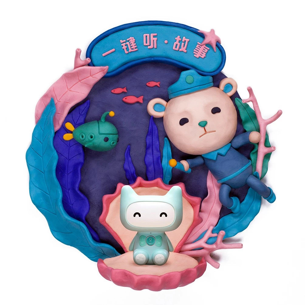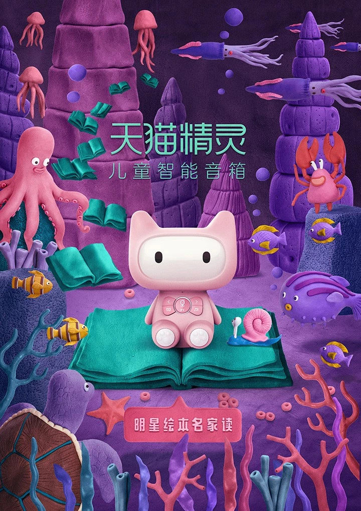 科技拯救世界,天貓精靈兒童智能音箱,把人類的雙手,從哄娃中解放出來,既以救世之名,自然借了上帝造物之手,所有物料,皆黏土捏製,十足童趣之餘,也作孩子們感恩的回應。阿門。