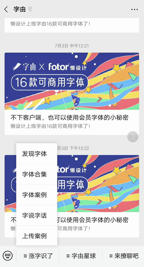 是不是超方便?还有更方便的,手机一键识别,点击字由服务号的菜单栏,在字由星球中找到AI识字。