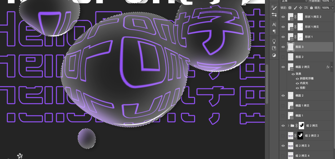 再多来几个圆,调整一下水珠位置,选择所有圆形的图层,右键合并形状。
