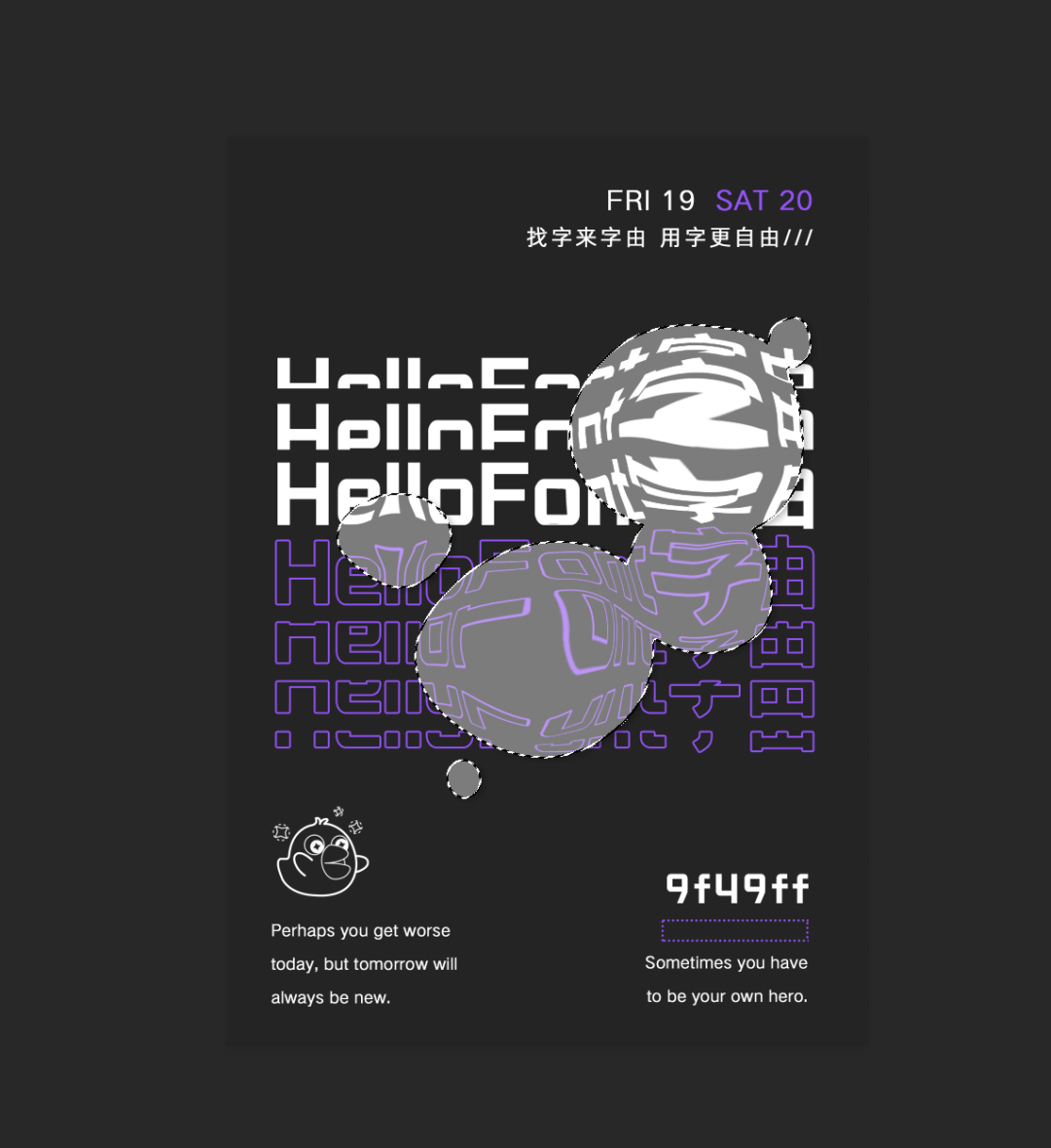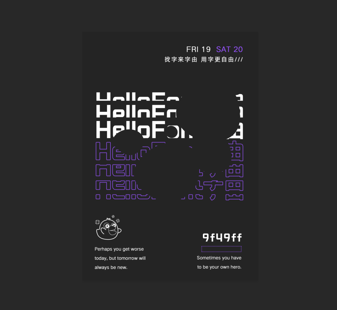首先分割排版一张文字海报,此处用到的字体是字由文艺黑和点字典黑。