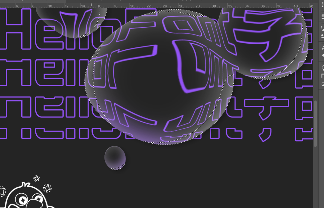 最后用喷枪画笔工具在每个水珠的左下角为水珠添加紫色的反光,用钢笔工具在右下角添加白色的反光。