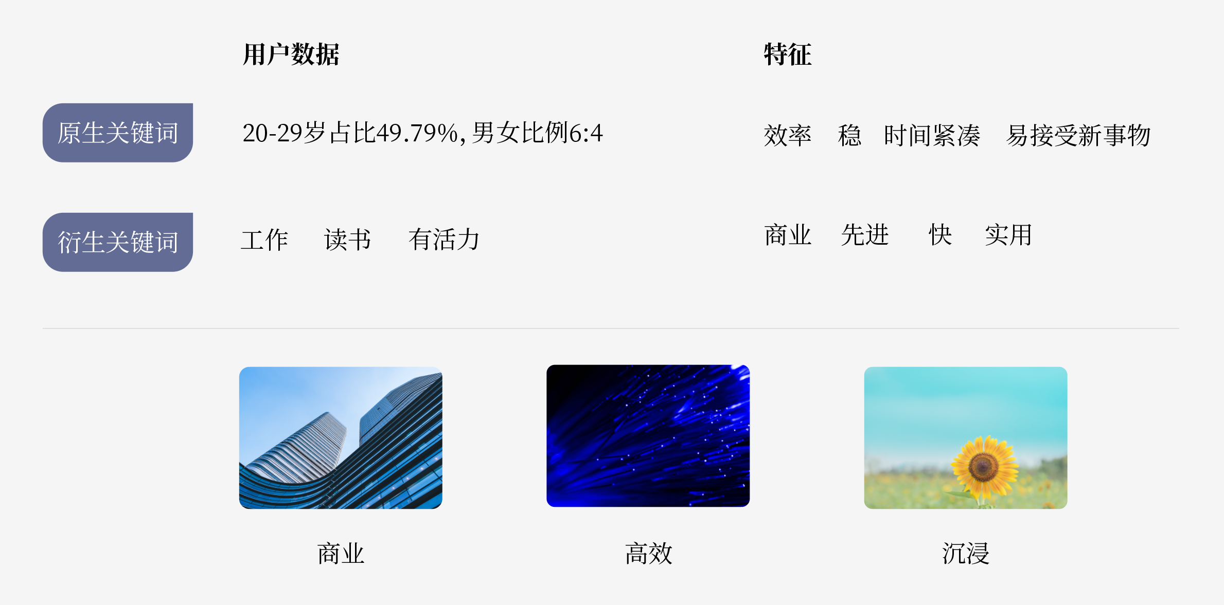 利用情绪版对设计相关的调性、元素和图像的集合,并用作设计参考点,也可以利用情绪版去了解用户及其特性。