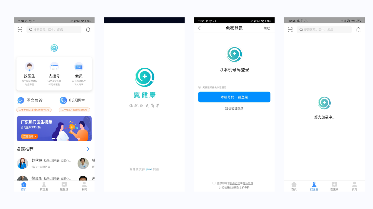 翼健康App是中国电信旗下的云康公司基于114预约挂号便民服务推出的集预约挂号、导诊、健康咨询等服务为一体的手机在线挂号就医类App,这款应用覆盖了全国超过500家合作医院,可预约超过8万名医生。而我们公司主要业务是远程医疗和互联网医院,所以对翼健康APP进行分析,总结其优点与缺点,作为一个背景相似并已成功的案例,我们应该会学多许多对我们接下来开发有用的东西。