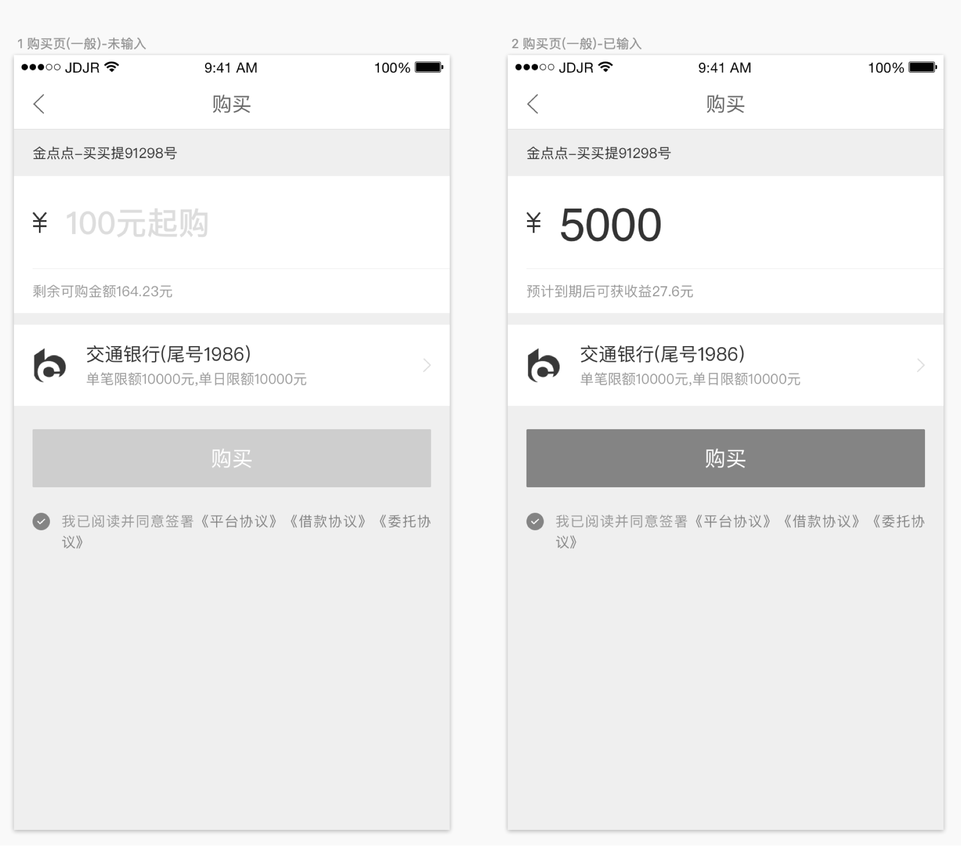 1. 以京东金融为例,在京东金融最近更新的版本中,我们看到财富界面和生活界面,同样的模块可以复用,对于复用性高的内容,应该提炼为通用组件,提高设计效率。
