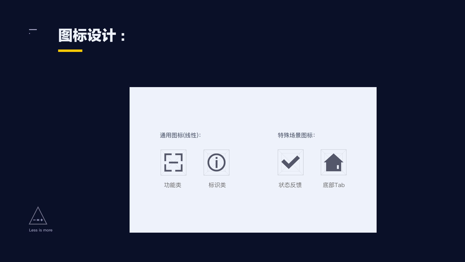 通过图标和文字的组合,清晰的展示用户所需要的场景,加上内容,就会变成一套完整的界面设计方案。