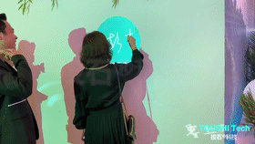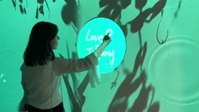 观众在触摸墙上电子签名后支持飞屏显示,同时墙面还会出现动态的互动效果,如水波纹漂浮,名字像漂浮在水中一样唯美。