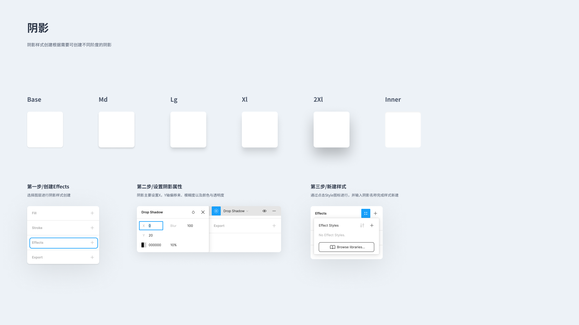 阴影样式的创建相对简单,设置好阴影参数与对应命名并逐个创建即可。