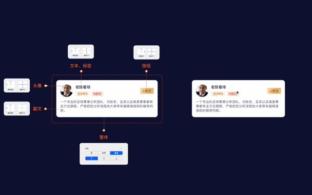 在前期创建组件考虑好组件逻辑,做好每一种状态。快速利用组件搭建完整页面,替换原子、分子元素。提升设计团队效率