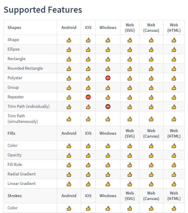 Bodymovin支持的效果类型大家可以在官方网站查询: