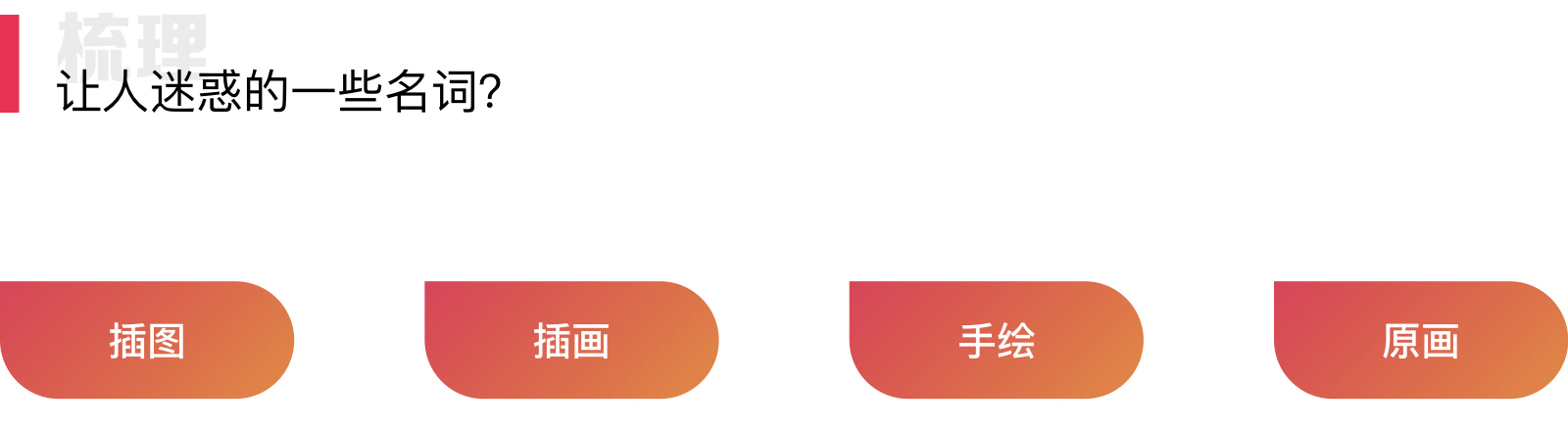 OK,目前一通哔哔下来。大家应该对「插图」「插画」「手绘」「原画」有了一定的认识。可是有些善于寻根究底的小伙伴还是会有这很多疑问。插画不就是插图吗?手绘不就是原画吗?手绘也是插图啊?等等...