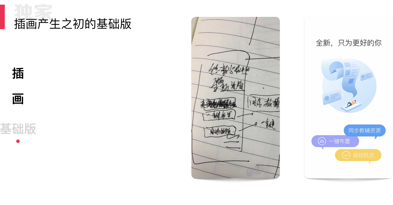 越来越多的情况下,我们找不到合适的照片,甚至素材。这个时候只能靠设计师自我创作,来直接的完成此类插图(此刻就可以称之为插画了)。而这时的插画还是与文字有一定的结合,我称之为「基础版插画」。